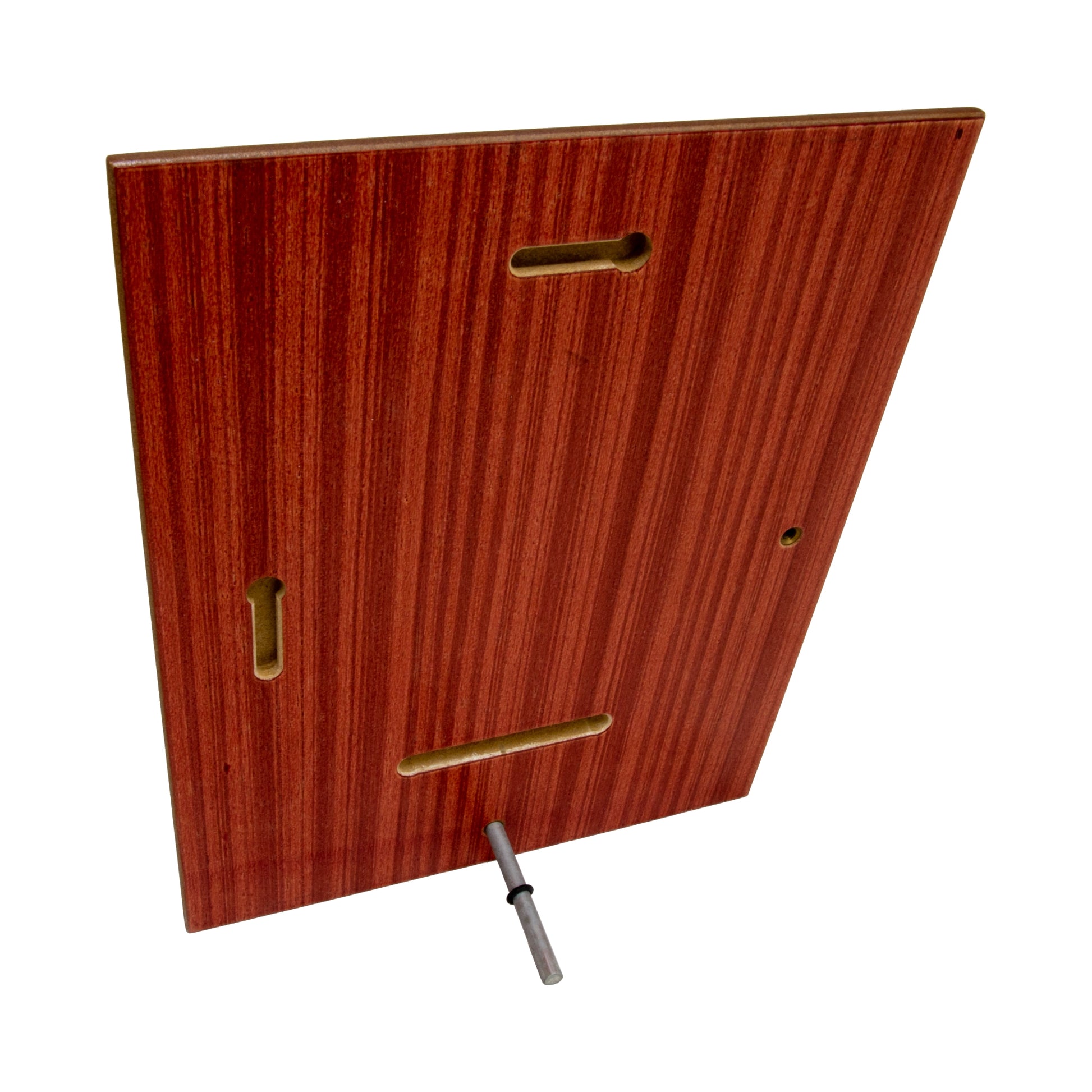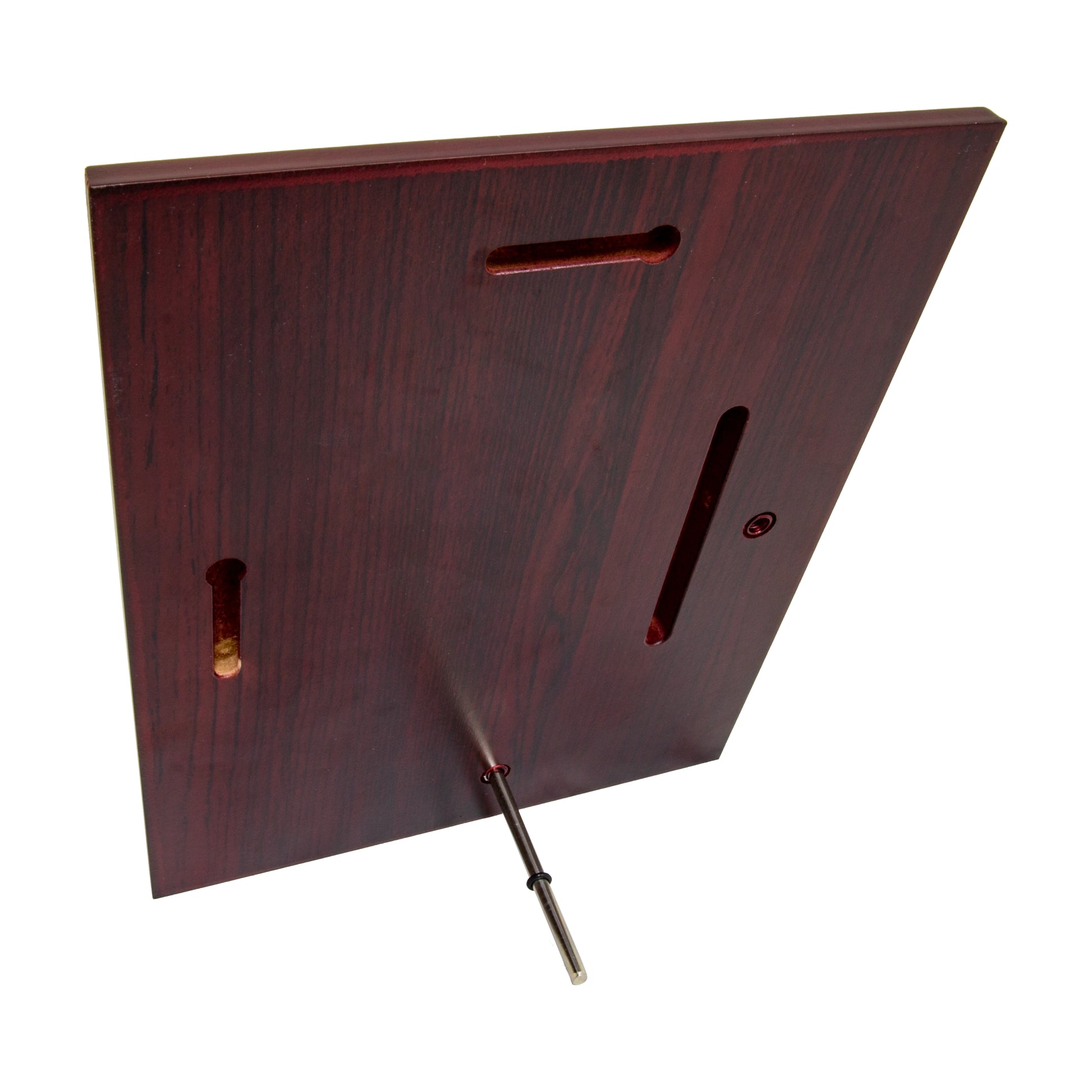 All plaque backings are made with our recessed keyhole wall hanging system, and this desktop size plaque also includes a pin-type stand for tabletop display. The board is made from environmentally sustainable MDF material. We do not use solid timber. Our timber finishes are laminated wood grain veneer with stained and lacquered surfaces.
