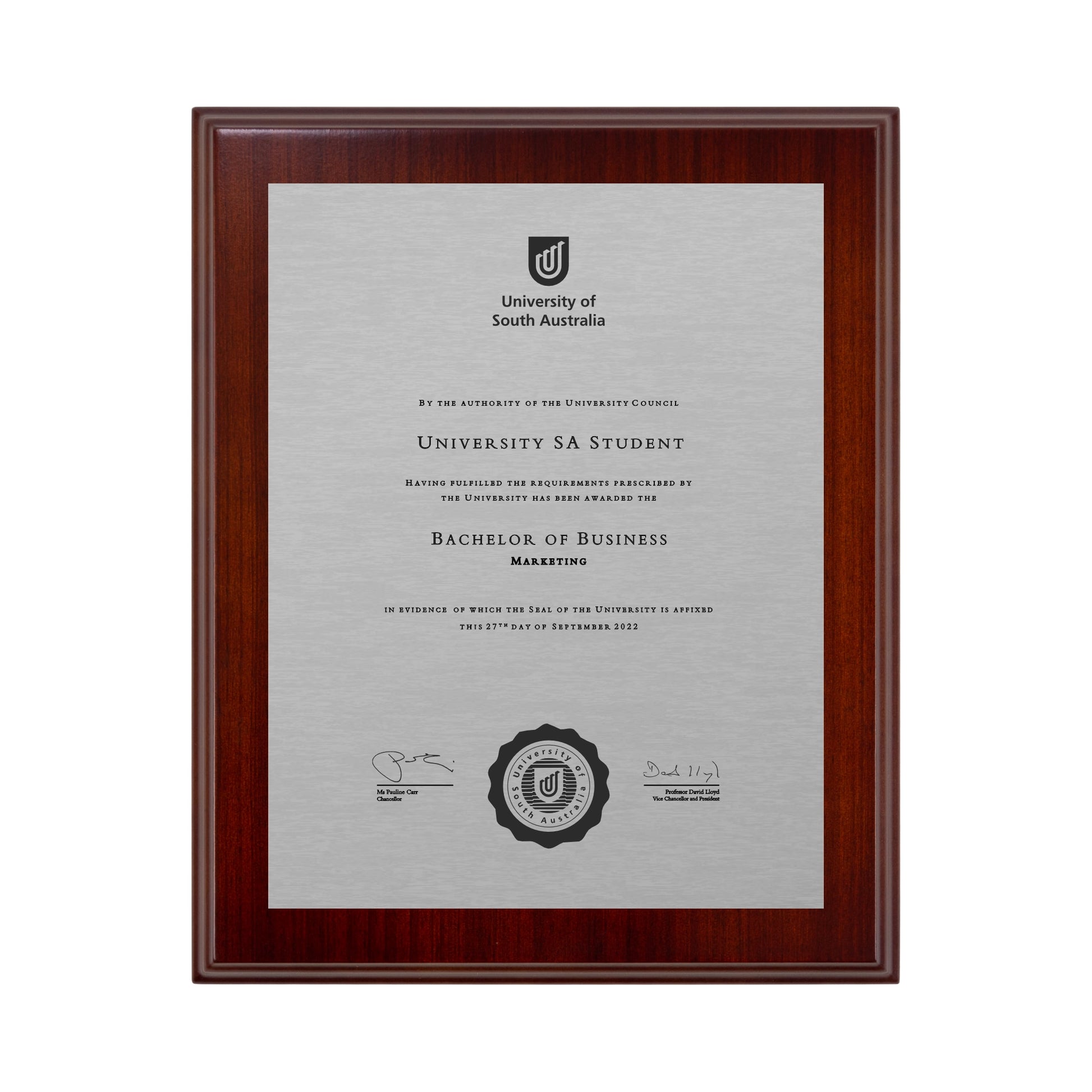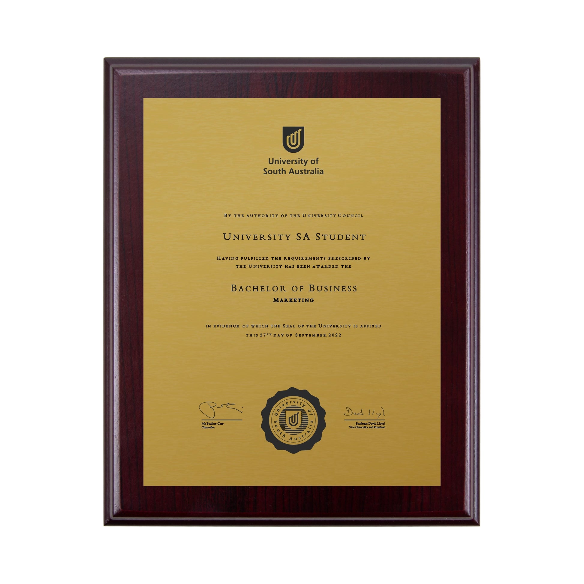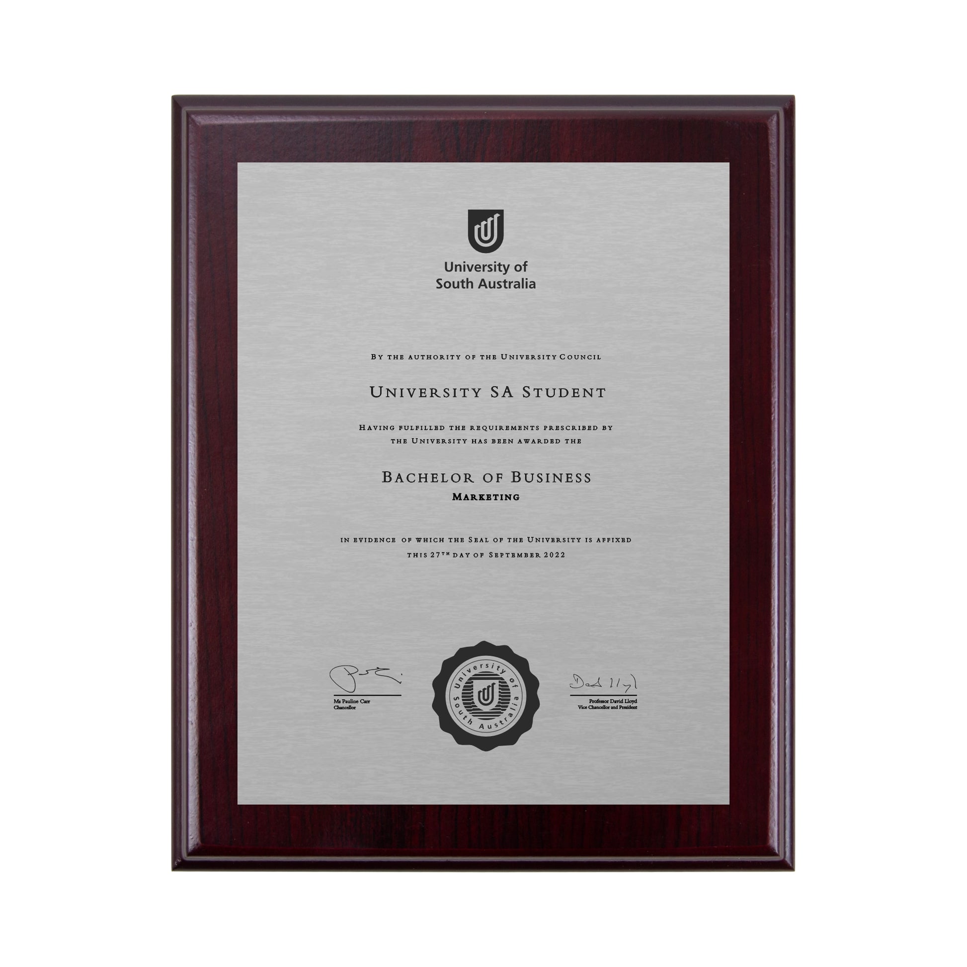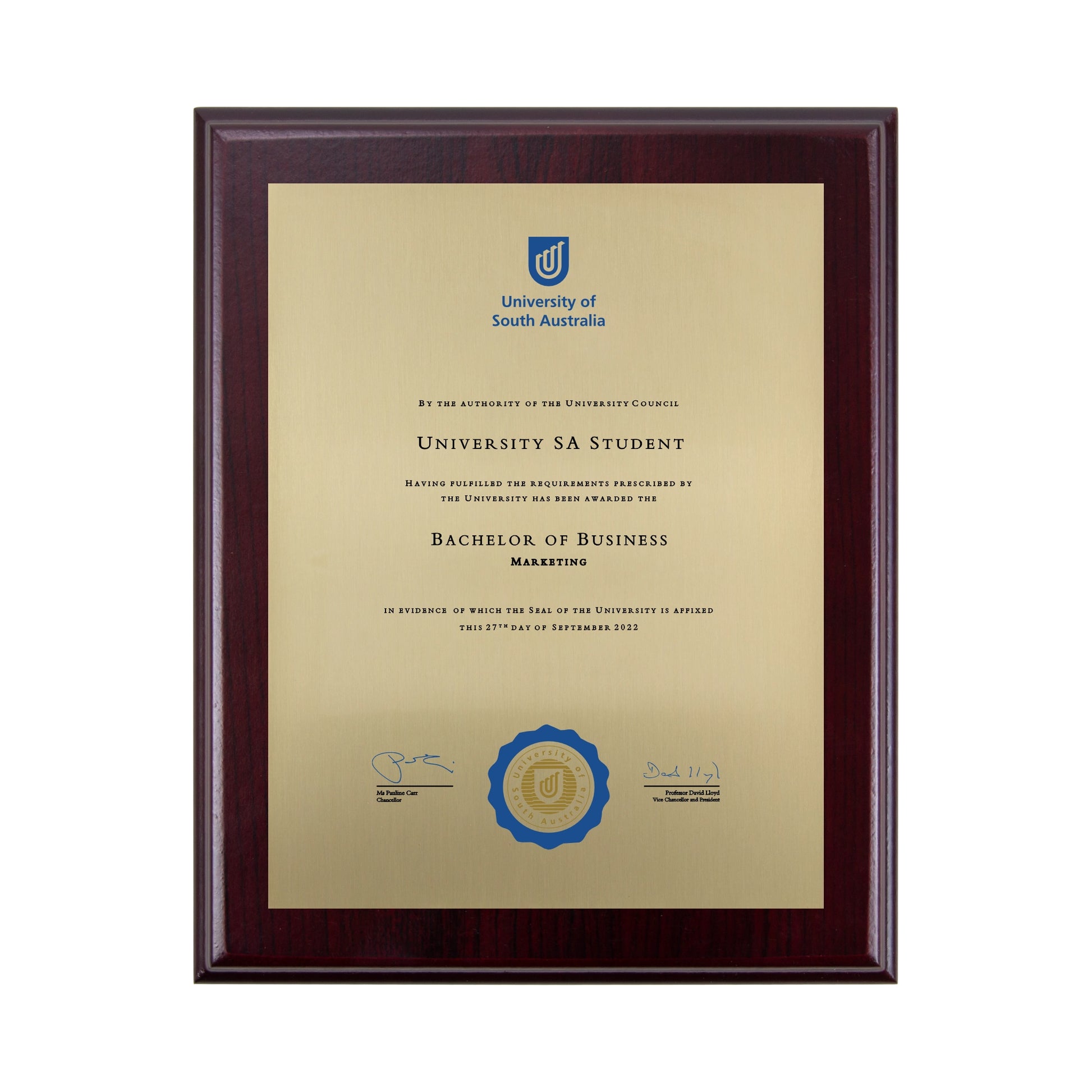 A tried and tested option for replica certificate display. A smaller size plaque ideal for display on your desk, with certificate detail reproduced at 50% scale. Dimensions of plaque - 25.5x20.5cm.