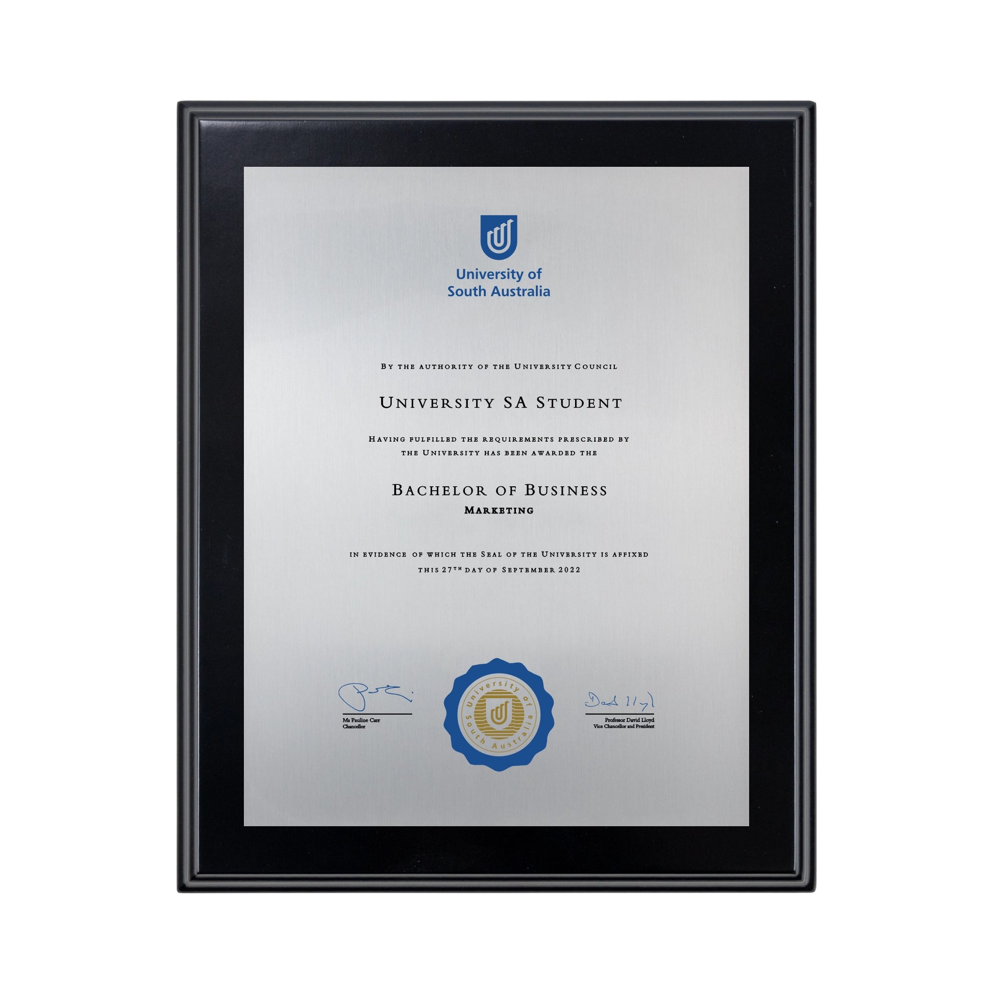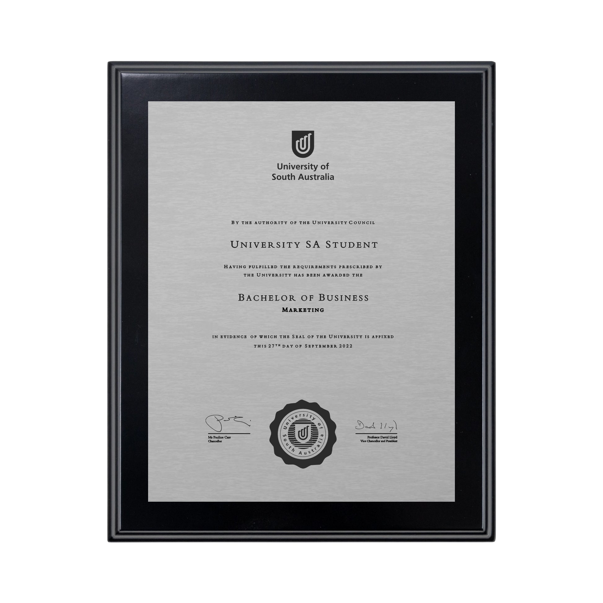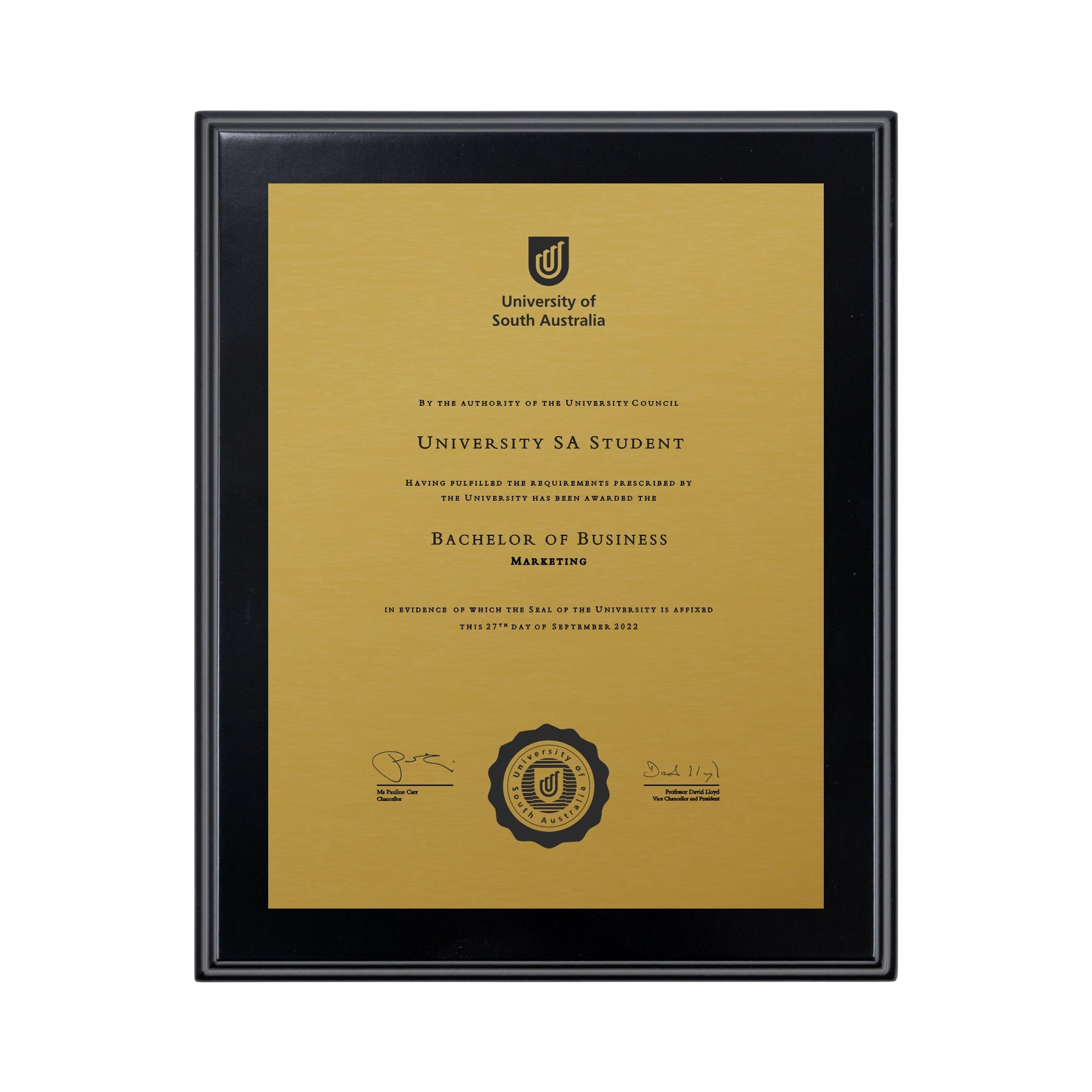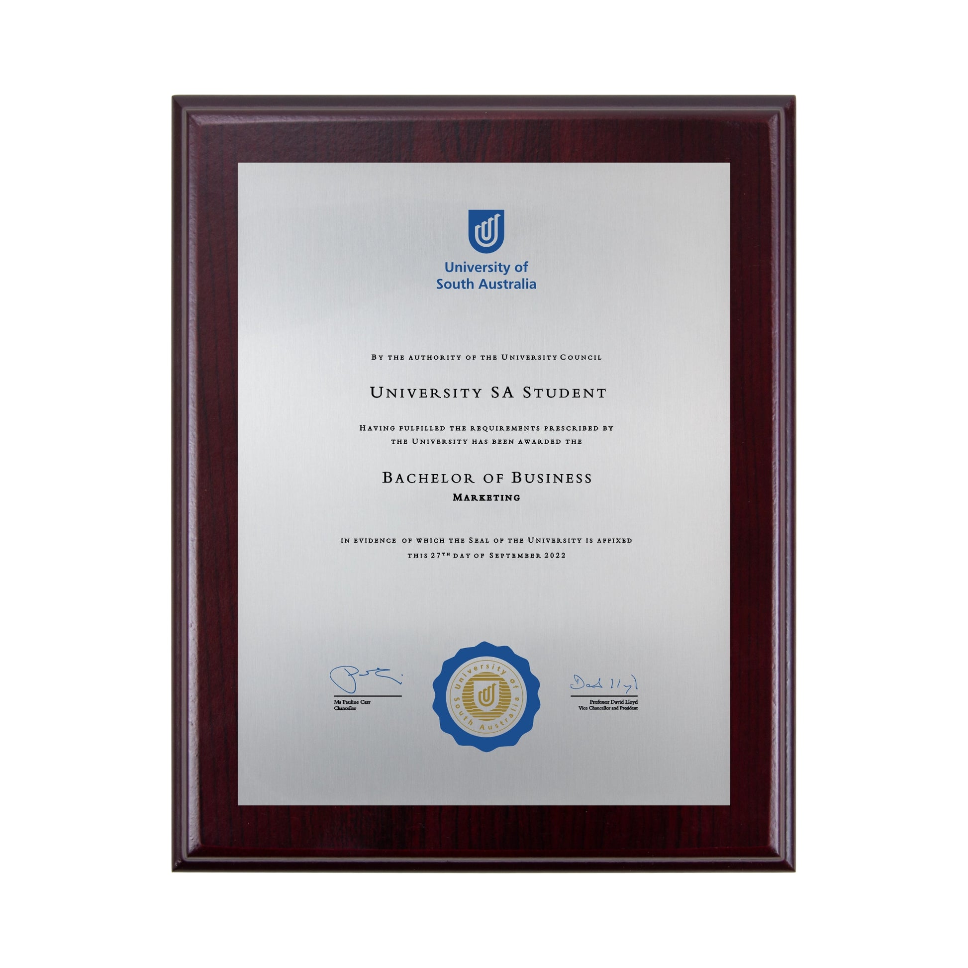 A tried and tested option for replica certificate display. A smaller size plaque ideal for display on your desk, with certificate detail reproduced at 50% scale. Dimensions of plaque - 25.5x20.5cm.