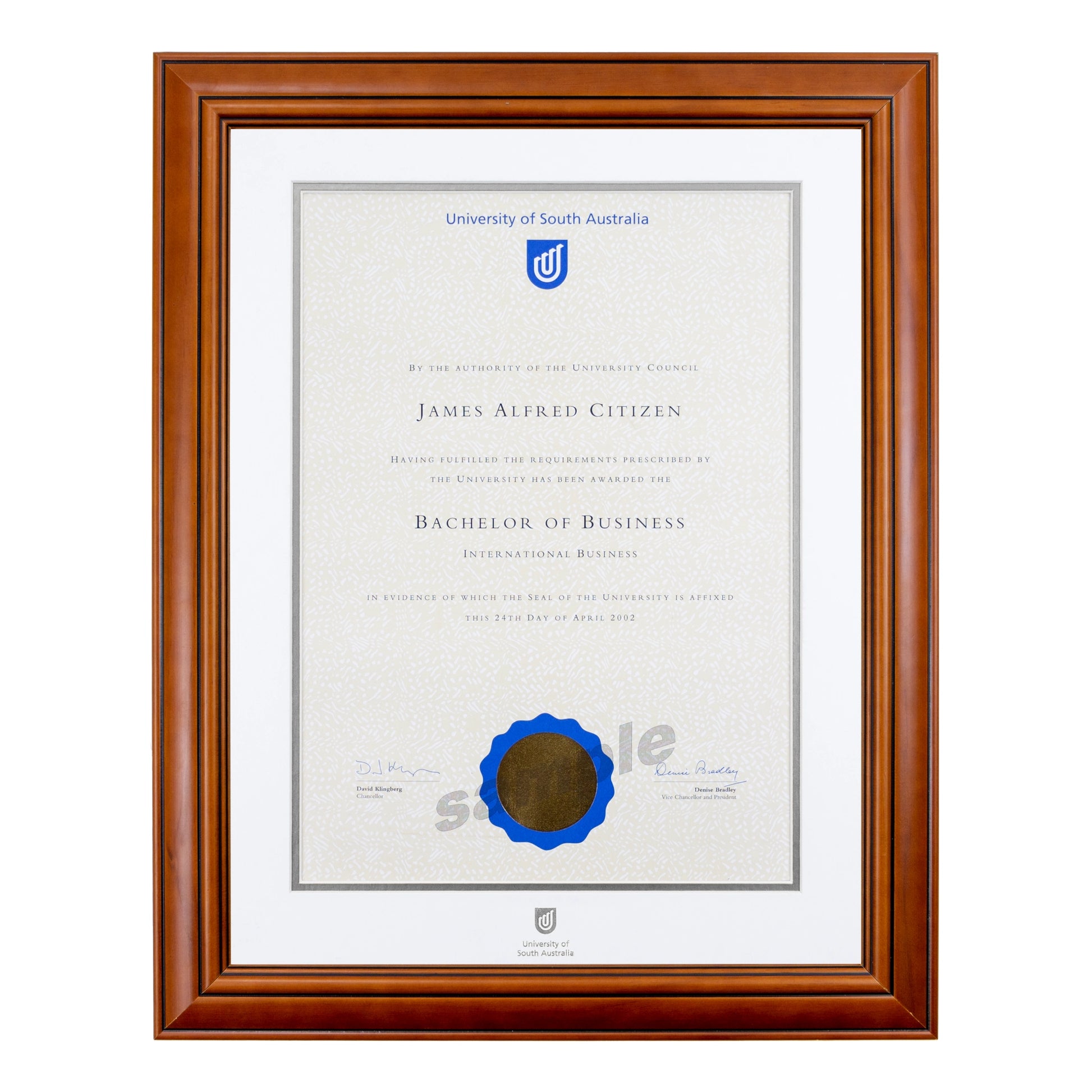 Traditional Timber Single Certificate Frame - University of South Australia