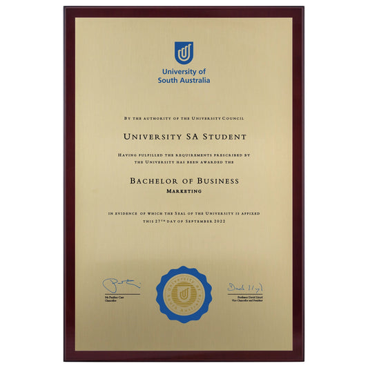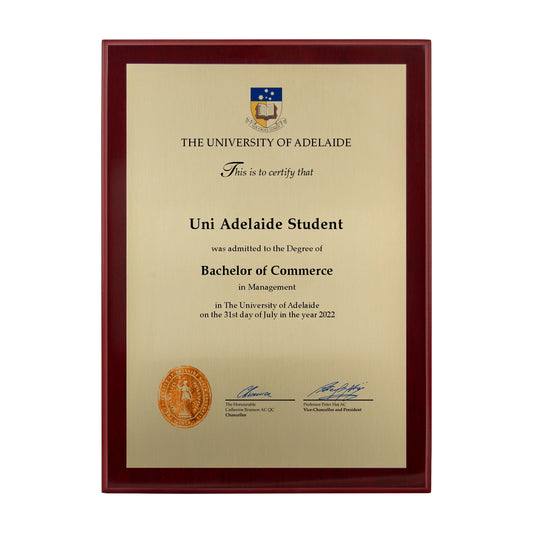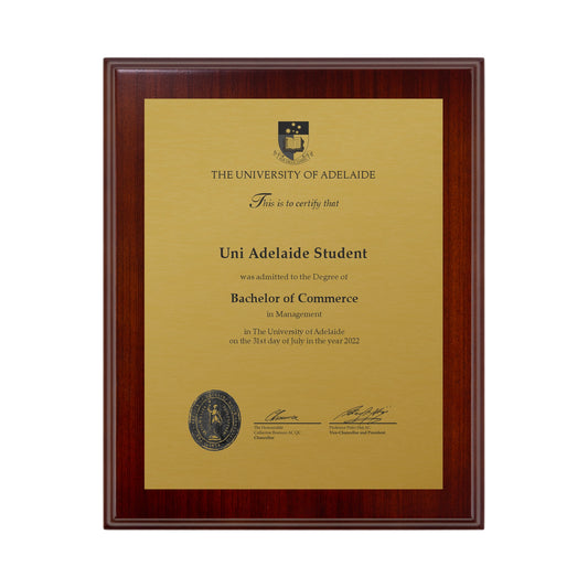 University of Adelaide Certificate Plaque - Small Desktop Size
